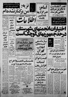 روزنامه اطلاعات روز پنجشنبه ۵ مهر ماه ۱۳۵۸