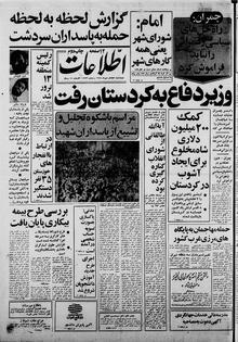 روزنامه اطلاعات روز چهارشنبه ۱۸ مهر ماه ۱۳۵۸