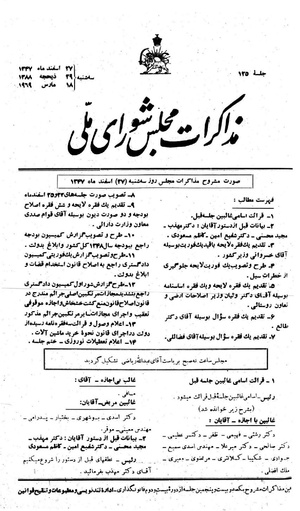 مذاکرات مجلس شورای ملی ۲۷ اسفند ۱۳۴۷ نشست ۱۲۵