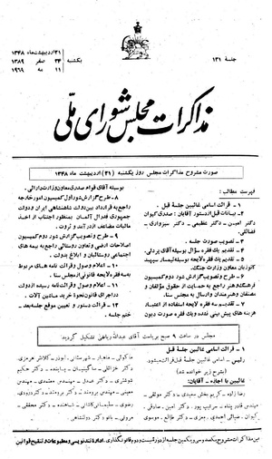 مذاکرات مجلس شورای ملی ۲۱ اردیبهشت ۱۳۴۸ نشست ۱۳۱