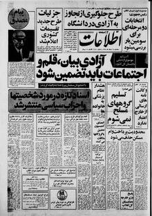 روزنامه اطلاعات روز سه‌شنبه ۱۴ اسفند ماه ۱۳۵۸