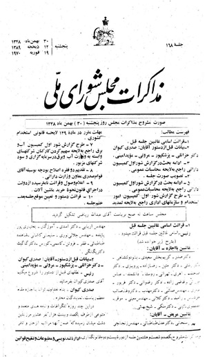صورت مشروح مذاکرات مجلس روز پنجشنبه (۳۰) بهمن ماه ۱۳۴۸
