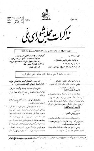 رئیس ـ بنده خواستم توجه همکاران محترم را به نکتهای جلب کنم اینجا صحبت شد ممکن است نمایندگان در نطقی که اینجا میکنند بعداً تغییری بدهند خواستم جناب آقای نخستوزیر را مطمئن کنم چنین سابقهای نبوده است منتها چون مطالبی که اینجا گفته میشود به وسیله تندنویسی نوشته میشود گاهی ممکن است کلماتی اشتباه نوشته شود و یا در موقع چاپ کلماتی اشتباه چاپ بشود در چنین مواردی است که به تقاضای نماینده اشتباهات اصلاح میشود.