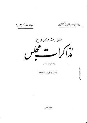 مذاکرات مجلس شورای ملی ۴ شهریور ۱۳۱۸ نشست ۱۰۳