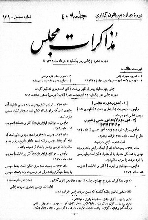 صورت مشروح مجلس روز یكشنبه ۵ خرداد ماه ۱۳۱۹