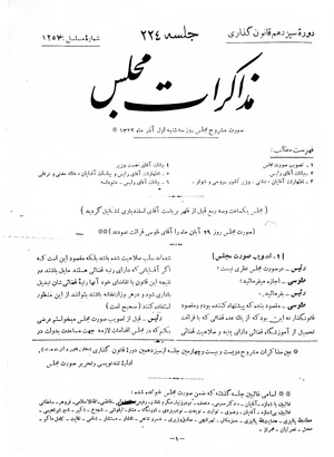 مذاکرات مجلس شورای ملی ۱ آذر ۱۳۲۲ نشست ۲۲۴