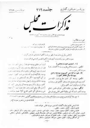 مذاکرات مجلس شورای ملی ۱۰ آبان ۱۳۲۲ نشست ۲۱۲