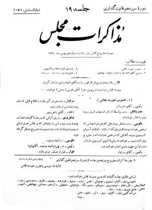 مذاکرات مجلس شورای ملی ۱۲ بهمن ۱۳۲۰ نشست ۱۹