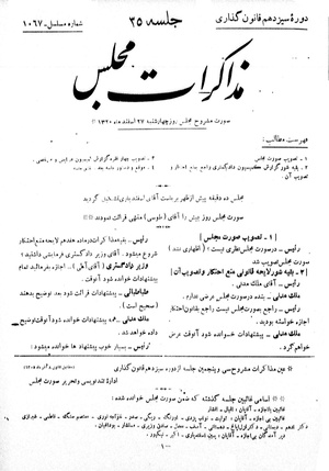 صورت مشروح مجلس روز چهارشنبه ۲۷ اسفند ماه ۱۳۲۰