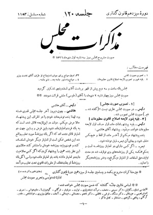 مذاکرات مجلس شورای ملی ۳ دی ۱۳۲۱ نشست ۱۲۰