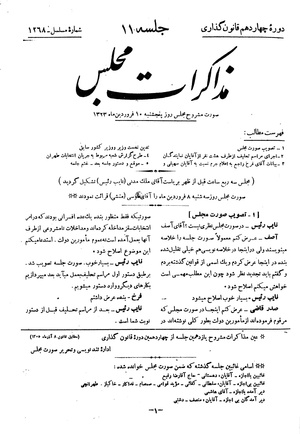 صورت مشروح مجلس روز پنجشنبه ۱۰ فروردین ۱۳۲۳ نشست ۱۱