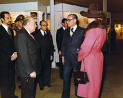 شاهنشاه و شهبانو در نمایشگاه کتابخانه پهلوی