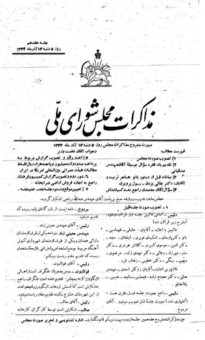 مذاکرات مجلس شورای ملی ۱۴ آذر ۱۳۴۲ نشست ۱۷