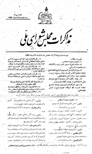 گزارش از کمیسیون نظام بمجلس شورای ملی
