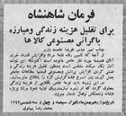 فرمان شاهنشاه دایر بر کاهش بهای کالاهای مورد نیاز مردم