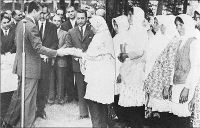 - - شاهنشاه محمدرضا شاه پهلوی در کاخ مرمر سند مالکیت املاک سلطنتی را به کشاورزان می دهند - ۴ آبان ۱۳۲۹