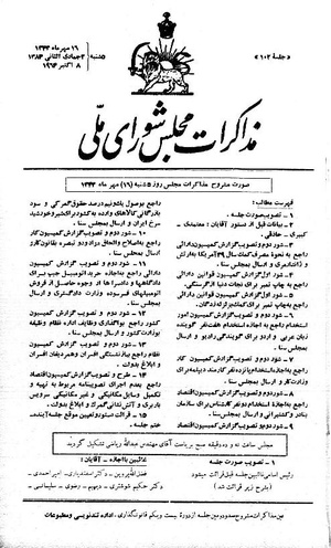 - ۱- گزارش شور دوم مربوط به موافقت نامه بین دولت شاهنشاهی و دولت اتحاد جماهیر شوروی راجع به همکاری اقتصادی و فنی. شماره چاپ ۱۰۳۰