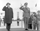 - ۸ فروردین ۱۳۳۶ دکتر کنراد آدنائر صدراعظم آلمان فدرال به فراخوان شاهنشاه وارد تهران شد و مورد پیشباز نخستوزیر و چند تن از وزیران و امیران ارتش قرارگرفت. ۹ فروردین شاهنشاه آدنائر را پذیرفتند. در این شرفیابی درباره گسترش پیوندهای بازرگانی ایران و آلمان گفتگو شد. روز پسین دانشگاه تهران دکترای افتخاری به آدنائر پیشکش کرد. ۱۳ فروردین دکتر آدنائر و همراهان به آلمان غربی پرواز کردند. در پایان گفتگوهای این هیات با مقامات ایرانی اعلامیه مشترکی به چاپ رسید.