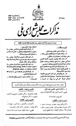 صورت مشروح مذاکرات مجلس روز یکشنبه ۲۳ آذر ۱۳۴۳ نشست ۱۲۶