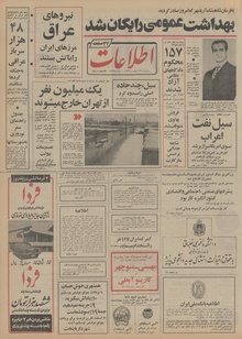 روزنامه اطلاعات روز سه‌شنبه ۲۸ اسفند ماه ۱۳۵۲