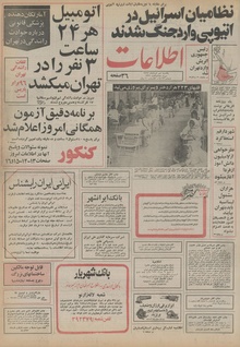 روزنامه اطلاعات روز یکشنبه ۹ خرداد ماه ۲۵۳۵ شاهنشاهی