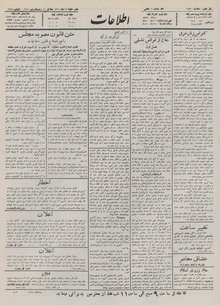 روزنامه اطلاعات روز پنجشنبه ۱۹ آبان ماه ۱۳۱۱