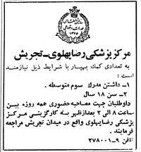 الف- مرکز پزشکی رضا پهلوی: یکی از نتایج تحولات اخیر سازمان شاهنشاهی خدمات اجتماعی تأسیس مرکز پزشکی رضا پهلوی در سال ۱۳۵۱ بود. برای تأسیس این مرکز، بیمارستان رضا پهلوی تجریش از صورت قبلی خود که تنها جنبه درمانی داشت خارج شد و علاوه بر توسعه خدمات درمانی و افزایش بخشهای درمانگاهی و بیمارستانی و ایجاد تأسیسات جدید تبدیل به یک مرکز آموزشی مجهز گردید و فعالیتهای نوینی در زمینه آموزش و تربیت پزشک و متخصص در آن آغاز شد.