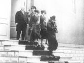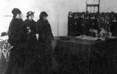 علیاحضرت ملکه پهلوی در جشن دانشسرای عالی و کشف حجاب دیپلم دختران را به آنان می‌دهند