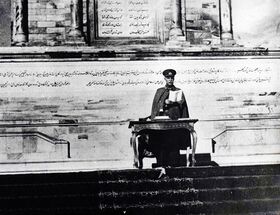 اعلیحضرت رضا شاه بزرگ در آرامگاه فردوسی ۲۰ مهر ماه ۱۳۱۳ توس