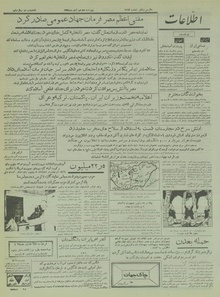 روزنامه اطلاعات روز پنجشنبه ۱۷ آبان ماه ۱۳۳۵