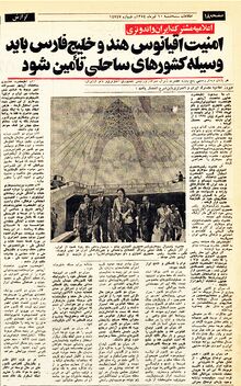 ۷- سران دو کشور اوضاع اقیانوس هند و خلیج فارس را بررسی و بار دیگر تأکید کردند که امنیت اقیانوس هند و خلیج فارس باید بوسیله کشورهای ساحل تأمین شود. سران دو کشور از اینکه اندیشه وجود اقیانوس هند به عنوان یک منطقه صلح و دور از رقابت قدرت‌ها و تشنج و فزایندگی حضور نظامی کشورها مودّت قبول و پشتیبانی وسیع‌تری واقع شده است، ابراز خرسندی کردند. بدین ترتیب، به این حقیقت از طرف دُوَل بیشتر توجه می‌شود که اجرای قطعنامه‌های سازمان ملل متحد در این زمینه به تحکیم صلح و امنیت بین‌المللی و پیشبرد منافع راستین کشورهای ساحل و تعمیم همکاری‌های اقتصادی در میان آنان کمک خواهد کرد. سران دو کشور در عین حال نگرانی شدید خود را از افزایش فعالیت ناوگان کشورهای بزرگ در منطقه اقیانوس هند ابراز داشتند و از این کشورها خواستار شدند که دست به اقداماتی نزنند که برای استقرار اقیانوس هند به عنوان منطقه صلح زیان‌بخش باشد. سران دو کشور در این مورد که صلح و آرامش در خلیج فارس بایستی با همکاری بین کشورهای ساحلی حفظ و حراست شود توافق داشتند.
