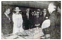 اعلیحضرتین در بازدید از کارخانه پتروشیمی ایران-نیپون. دکتر اقبال و فرخ نجم آبادی وزیر صنایع و معادن