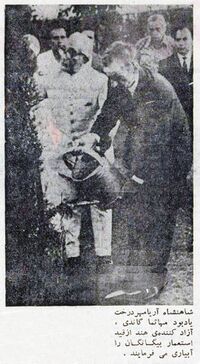 آریامهر درخت یادبود مهاتما گاندی را آبیاری می فرمایند
