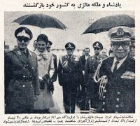 پسواز رسمی از پادشاه و ملکه مالزی. تیمسار ارتشبد آریانا، ارتشید عظیمی ژنرال آجودان شاهنشاه پشت سر اعلیحضرتین
