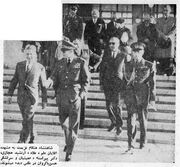 شاهنشاه سپس به صف مأمورین اصلاحات ارضی رسیدند و مدتی با آقای سالور رئیس سازمان اصلاحات ارضی کشور و آقای مهندس آصفی رئیس کشاورزی و اصلاحات ارضی خراسان صحبت فرمودند. آنگاه شاهنشاه گفتند: هر چه زودتر مقدمات اجازه دادن املاک آستانه قدس رضوی را فراهم کنید زیرا که باید هر چه زودتر تا آخر سال این کار عملی شود. شاهنشاه بعد به مقابل صف خبرنگاران اطلاعات و کیهان تشریف آوردند و از خبرنگاران سئوال فرمودند، به چه وسیله به بیرجند آمدهاید. به عرض رسید تا مشهد وسیله راهآهن و از آنجا تا بیرجند با اتومبیل. شاهنشاه فرمودند: وضع راهها چگونه بود. خبرنگار اطلاعات عرض کرد: ما تصور میکردیم راه مشهد – بیرجند خیلی خراب خواهد بود، ولی حقیقت آنکه خیلی بهتر از حد انتظار بود. شاهنشاه فرمودند: شما باید با مردم اینجا و شهرستانهای دیگر مرتباً در تماس باشید و جزئیات را بنویسید. خبرنگار اطلاعات به عرض رسانید: در دو سال اخیر ما وسیله روزنامه خود نهایت سعی را در تحقق اصلاحات ارضی و تفهیم آن به مردم کردهایم. شاهنشاه فرمودند: باز هم بکنید. اینجا هم خوشبختانه مردم روشنفکر زیادی دارد. بعد شاهنشاه از مقابل صف دختران پیشآهنگ عبور فرموده و سپس با اتومبیل به سوی شهر حرکت کردند. گزارش خبرنگار ما حاکی است که شهر بیرجند با پرچمها و عکسهای شاهنشاه و قالیهای زیبا و کاغذهای رنگین آراسته شده بود و مردم نسبت به شاهنشاه ابراز احساسات میکردند. شاهنشاه آنگاه برای استراحت به باغ شوکتآباد عزیمت نمودند و شب در منزل آقای نخستوزیر استراحت کردند.