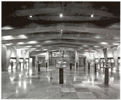 تالار سخنرانی به فرم پلکان ساخته شده است. دیوارهای عمودی (تکیهی پشت) یک فرتور شفاف بزرگ را فرم میدهد که از پشت به کمک چراغهای مهتابی ویژه که دستگاههای الکترونیک کم و زیاد کردن نور در آن کارگذاشته شده است، روشن میشود.
