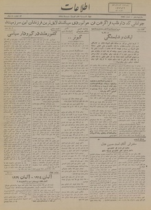 روزنامه اطلاعات روز چهارشنبه ۷ شهریور ماه ۱۳۱۸