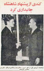 - ↑ مصاحبه اعلیحضرت همایون محمدرضا شاه پهلوی آریامهر با خبرنگار یونایتدپرس کاخ نیاوران ۲۰ فروردین ماه ۱۳۵۴