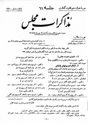 مذاکرات مجلس شورای ملی ۲۱ مهر ۱۳۱۹ نشست ۶۱