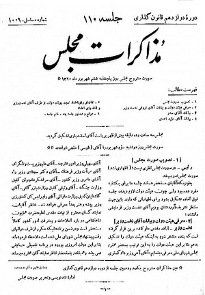 مذاکرات مجلس شورای ملی ۶ شهریور ۱۳۲۰ نشست ۱۱۰