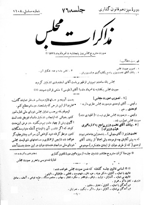 مذاکرات مجلس شورای ملی ۴ امرداد ۱۳۲۱ نشست ۷۵