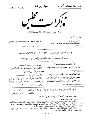 مذاکرات مجلس شورای ملی ۱۷ دی ۱۳۲۳ نشست ۸۹
