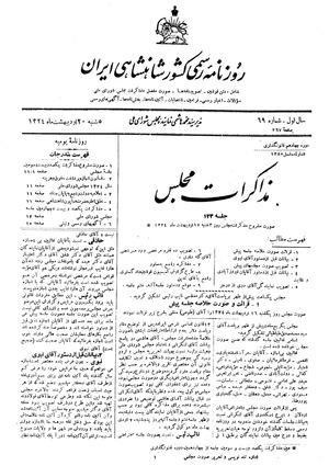 صورت مشروح مجلس روز شنبه ۱۸ اردیبهشت ۱۳۲۴ نشست ۱۲۳