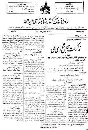 صورت مشروح مذاکرات مجلس روز پنجشنبه ۱۲ دی ۱۳۳۰ نشست ۲۱۷