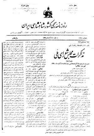صورت مشروح مذاکرات مجلس روز پنجشنبه ۹ آبان ۱۳۳۰ نشست ۱۹۸