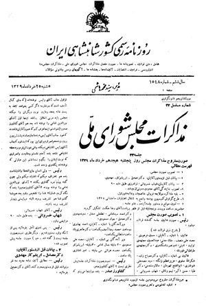 مذاکرات مجلس شورای ملی ۱۸ خرداد ۱۳۲۹ نشست ۳۳
