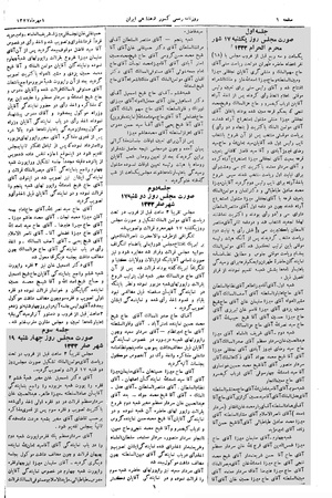 آقای سردار سعید نیز راپورتهای حاضره شعبه سوم را قرائت نموده ودرنمایندگی آقایان دکتر حسینقلی خان نجف قلی میرزا –شریف العلماء-وامیر موید فرداَ فرد اخذ رأی وتصویب شد واخذ رأی درخصوص آقا سید فاضل موقوف ببعد گردید پس ازآن آقای سلیمان میرزا شروع بقرائت راپورتهای شعبه چهارم نموده ونمایندگان آقایان موتمن الملک وآقا شیخ محمد حسین یزدی ومشیر الدوله باکثریت تصویب گردید بعد ازآن راپورت شعبه مزبور راجع بانتخاب آقای مستوفی الممالک قرائت شده وآقایان مدرس وحاج شیخ اسدالله وسردار معظم راعثیده این بود که مذاکره واخذ رأی درحضور نمایندگی آقایان وزراء موکول ببعد شود وآقای مدرس پیشنهاد نمودند اخذ رأی درباب نمایندگی آقایان وزراء موکول ببعد از رسیدگی باعتبار نامه ها شود بالاخره پس ازقدری مذاکره آقای مخبر راپورتهای مزبوره رااستراد نموده که پس از تبادل افکار ثانیا بمجلس تقدیم شود دراین موقع اجازه تنفس داده شده وپس ازپانزده دقیقه مجددا جلسه تشکیل وراپورت شعبه چهارم راجع بنمایندگی آقای مبصر الملک قرائت ونمایندگی ایشان نیز تصویب شد دراین وقت آقای حاج شیخ اسد الله راپورتهای شعبه پنجم راقرائت نموده ودرنمایندگی آقایان ذیل اخذ رأی وتصویب گردید