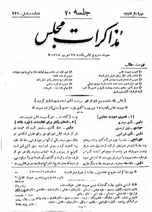 مذاکرات مجلس شورای ملی ۲۹ شهریور ۱۳۱۵ نشست ۷۰