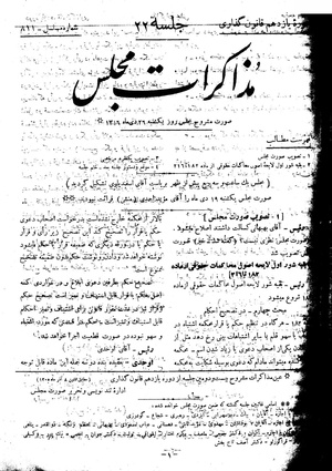 مذاکرات مجلس شورای ملی ۲۶ دی ۱۳۱۶ نشست ۲۲