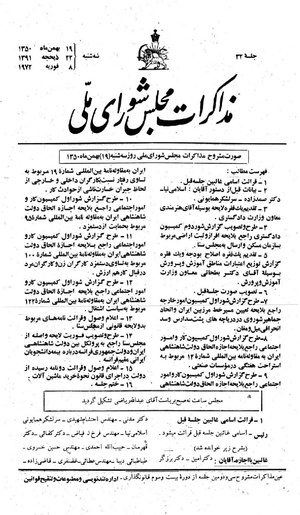 صورت مشروح مذاکرات مجلس روز ۱۹ بهمن ۱۳۵۰ نشست ۳۲